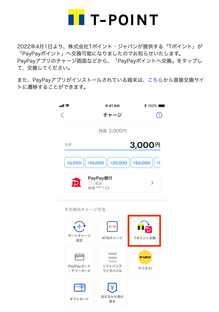 Tポイントからの変更も、PayPayのアプリから可能だ。