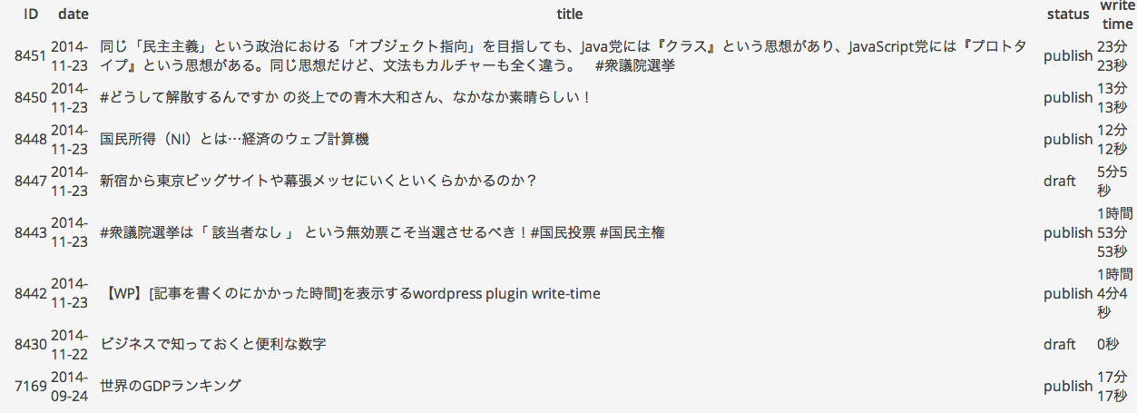 wordpressの標準の機能では、このような機能は無いので、【記事を書くのに掛かった時間を表示】出来るのは、このpluginを有効化してから書いた記事のみとなります。