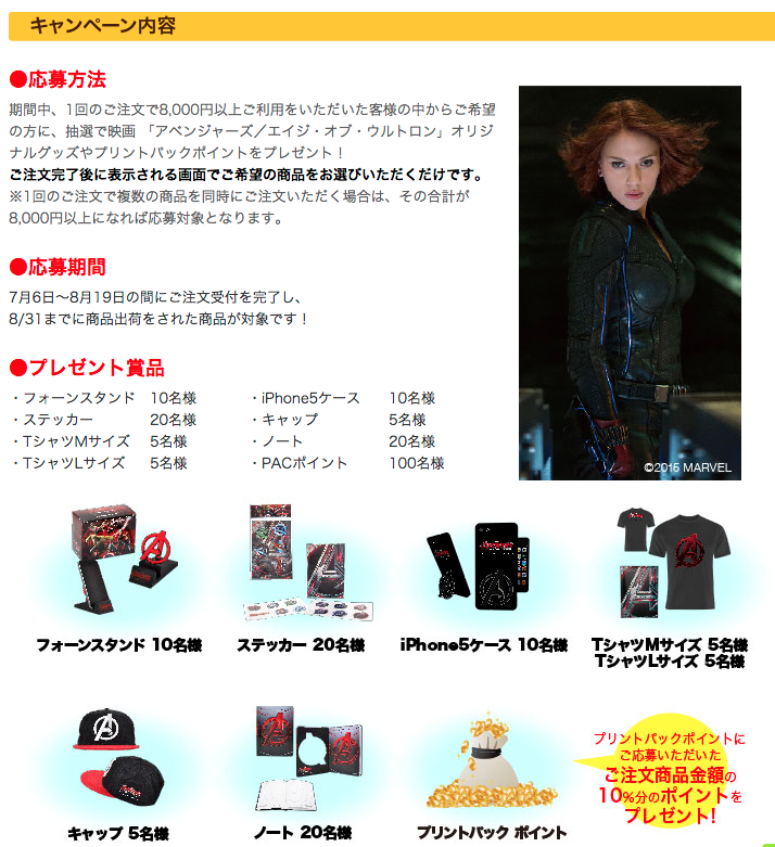 ホームmovie 『プリントパック』×『アベンジャーズ』映画とは、まったく関係のないようにみえるタイアップキャンペーン 2015年08月21日 金曜日 SHARE ポスト シェア はてブ LINE 『プリントパック』と『アベンジャーズ』 8,000円以上の印刷の注文で抽選で当たる! 映画のターゲットは印刷を注文しているのだろうか? Views: 0