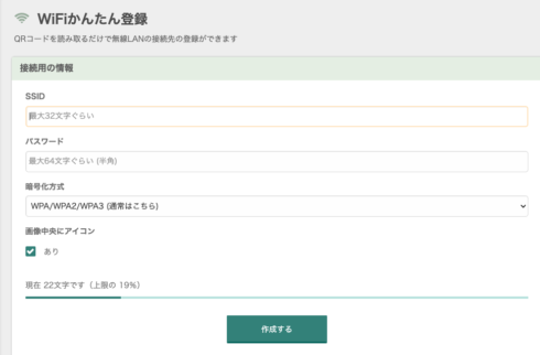 Wi-Fi のSSID と パスワードを同時にQRコード化できる無料サイト