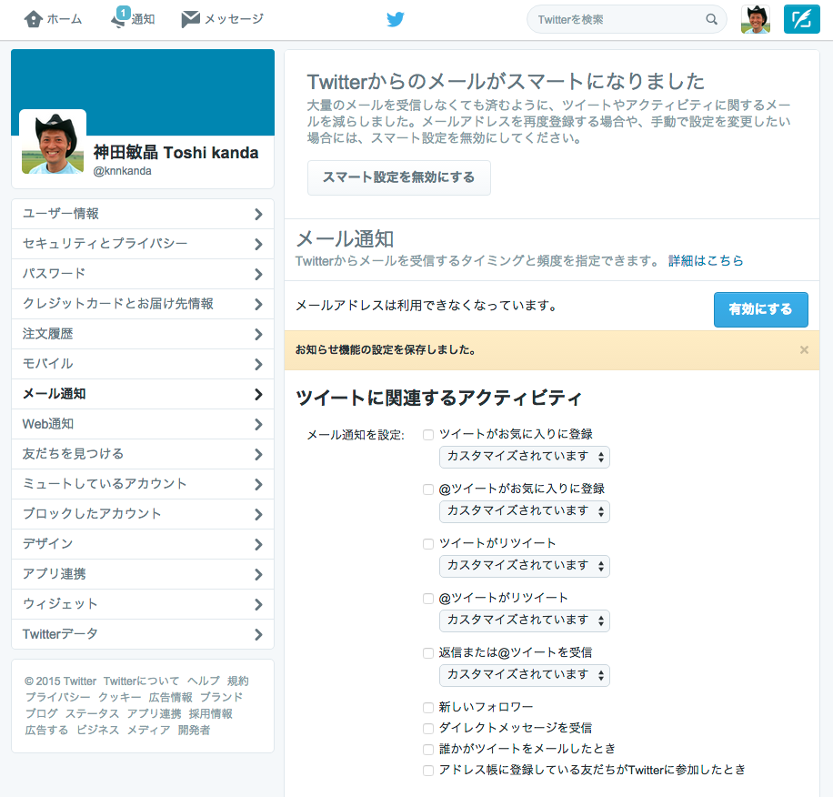 そんな時は、「twitter 通知メール やめたい」で検索してみる…。