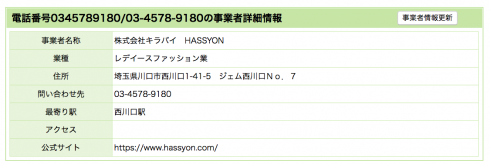 なんと、https://www.hassyon.com/ の03-4578-9180 を調べてみると…。