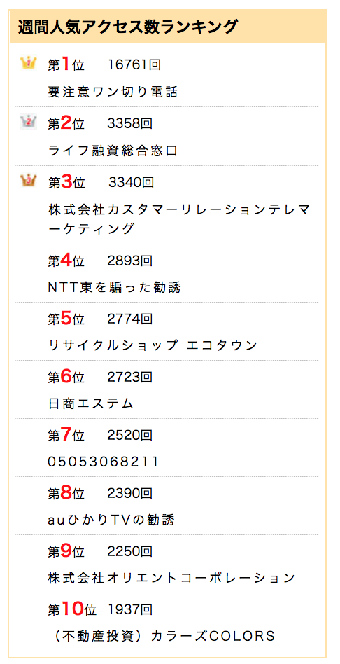 また、電話番号口コミサイトのランキング見ているといろんなトラブルが見え隠れしています
