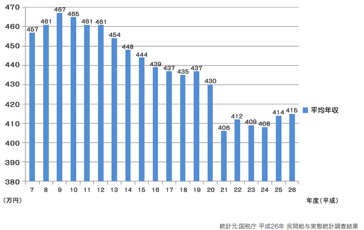 平成26年(2014年)のサラリーマンの平均年収は415万円
