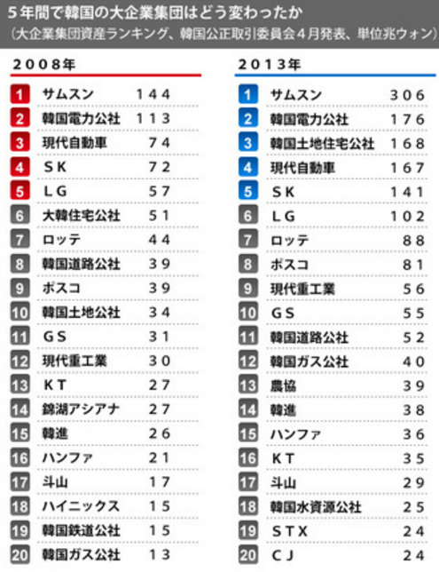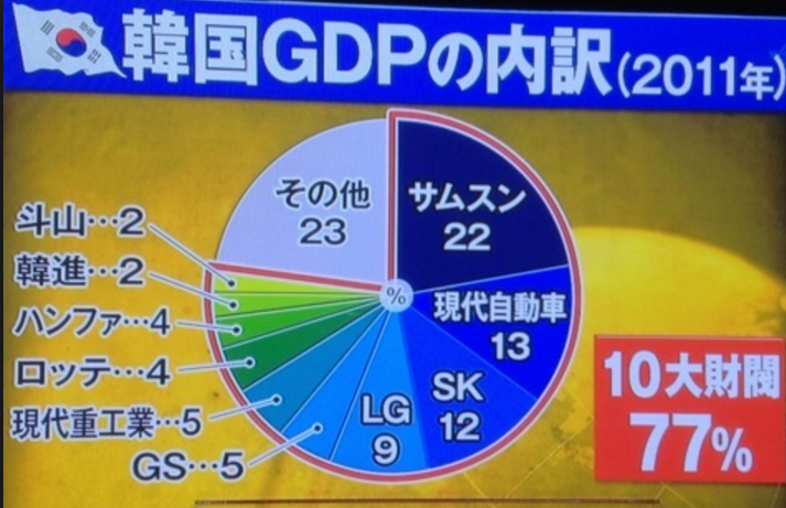 ❏10大財閥がGDPの7割占める 不平等感強い社会構造大手10財閥の売上は、韓国のGDPの70%程度