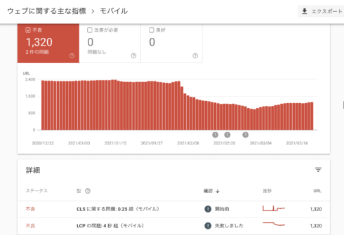 検索順位はあがってくる傾向が見えたので、『モバイルユーザーフレンドリー』対策として、このエラー数 761を減らしたい…。
