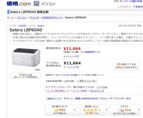しかたなく、モノクロレーザーの無線WI_FIで一番安いのを購入。