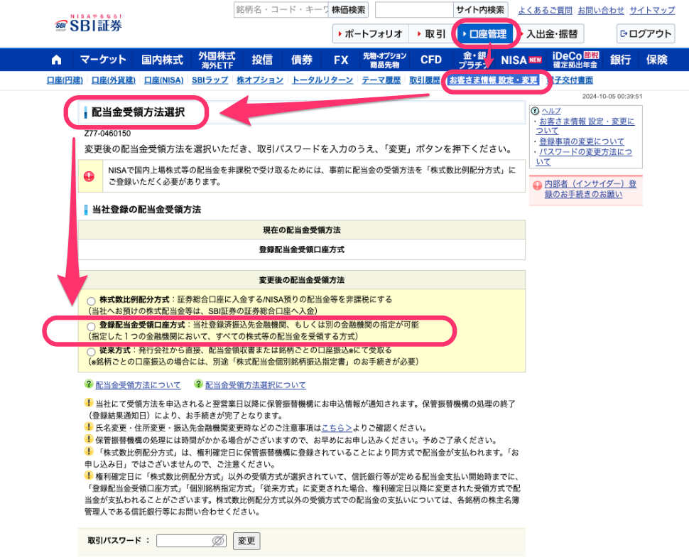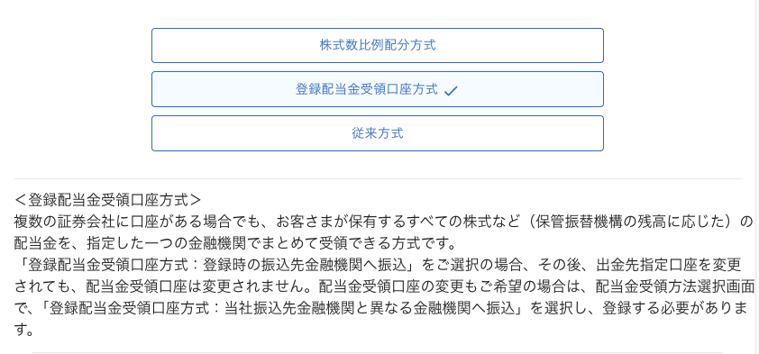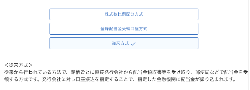 まずは、配当金がある度に、投資用の銀行口座に少なくても、銀行利息の何倍もの振込があるので、選択しておきましょう。