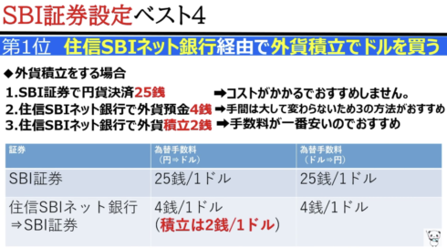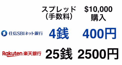 住信SBIネット銀行の為替手数料だと1ドルあたり、4銭の格安の手数料(スプレッド)! ※子供NISAではドル建てでの株購入は不可