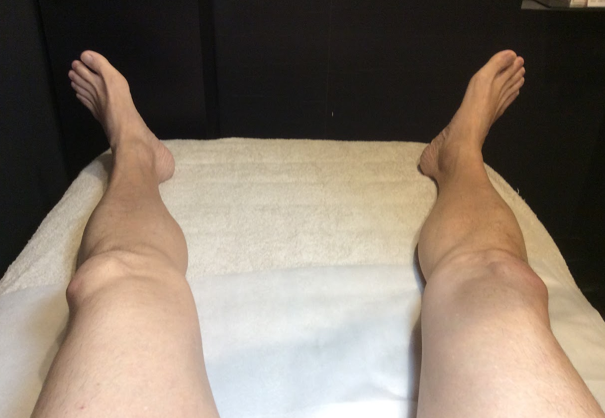 いやいや、シェーというより、つまりこれで脚を「命!」のポーズで Iゾーンの施術。