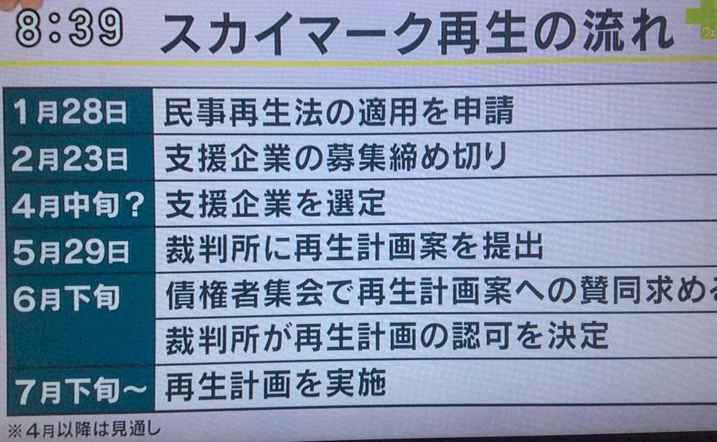 そして、6月下旬の債権者集会での賛同に稟議。そして裁判所の再生計画を認可してからの決定だ。そして、7月下旬に再生計画がスタートする。