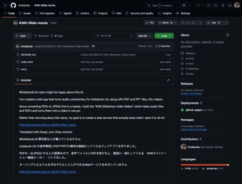 Since converting PDFs to JPEGs first is a hassle, I built the “KNN Slideshow Video Maker,” which takes audio files and PDFs and turns them into a video in one go.