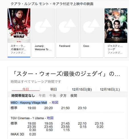 たまたま、昨晩、12月15日(金)に全世界公開になるSTAR WARS:Last Jediをどこで見るかと… Googleに「 movie 」と打ち込むと…。