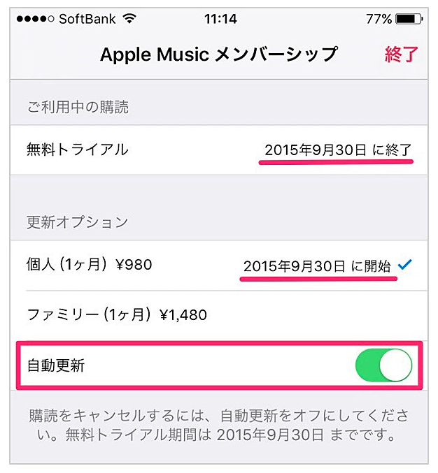 Apple MUSICスタート!無料期間の間にさっそく解約設定!