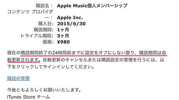 【重要】Apple Musicは「2日前迄」に自動更新オフにしないと課金が発生
