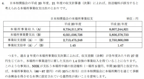 大相撲放送権料についての監査要望ならびに質問書