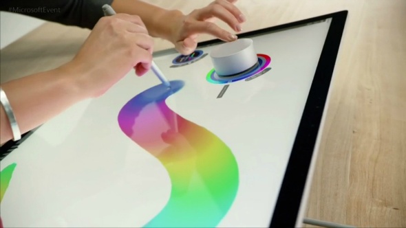 AppleのiMacのようなオールインワン(AIO)タイプのPC。OSにはWindows 10を搭載。タッチパネル操作が可能なSurfaceシリーズの特徴はそのままに、最上位モデルではCPUに第6世代クアッドコアIntel Core i7、GPUにNVIDIAのGeForce GTX980M、32GBメインメモリ、2TBのSSDを搭載するなど、デスクトップタイプならではの高性能を実現している。28インチのPixelSenseディスプレイ(4500×3000ピクセル・192ppi、アスペクト比3:2)を搭載。可動式のスタンドを採用し、ディスプレイ部分を引き倒すことで大型タブレットのようにも使える。タッチペン「Surface Pen」や新発表の入力デバイス「Surface Dial」などのオプションにも対応し、液晶ペンタブレットのように絵を描いたり、3Dモデリングしたり――といった利用が可能だ。