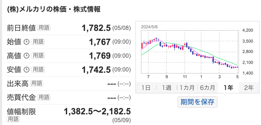 なんといっても、個人でメルカリ株 3万株 @ 1800