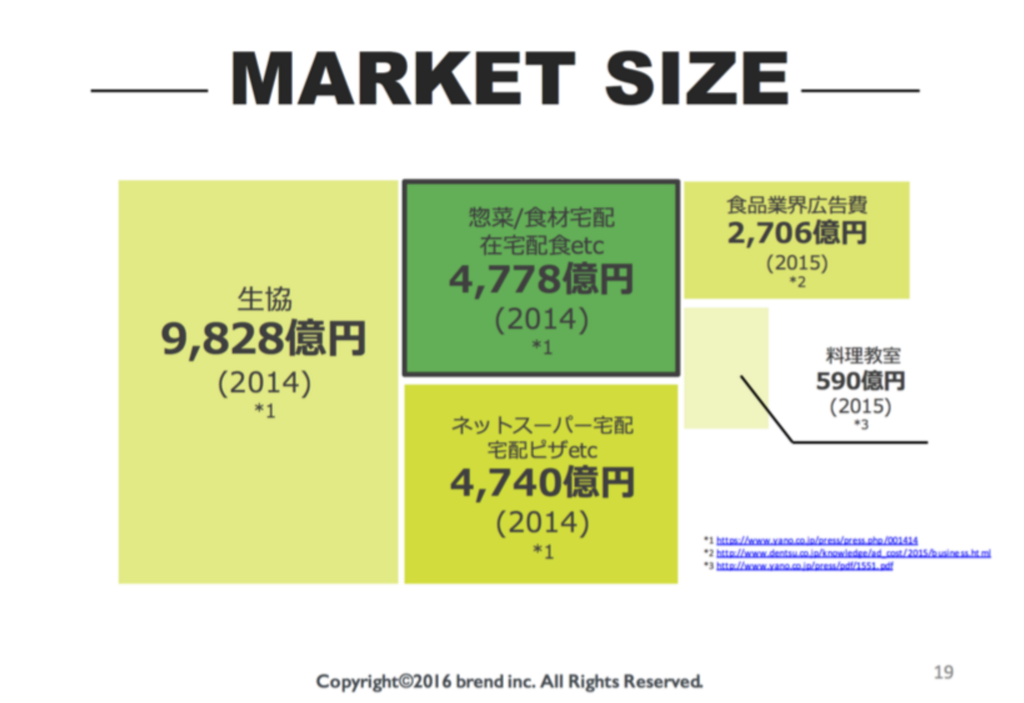 ❏海外では、先行事例に、今年のIPOも予想されているユニコーン企業の米Blue Apron、2015年11月に上場した独HelloFreshがある。Blue Apronは、バリュエーションは20〜30億ドル、2016年9月時点で毎月800万食(1食あたり9.99ドル)を配達し年間売上高は推定9億6,000万ドル、来期には売上高10億ドル以上を見込まれている。一方HelloFreshは、ロケットインターネットが支援する会社で、2015年売上高2億9,000万ドル、新規上場時の時価総額は29億ドルだった。