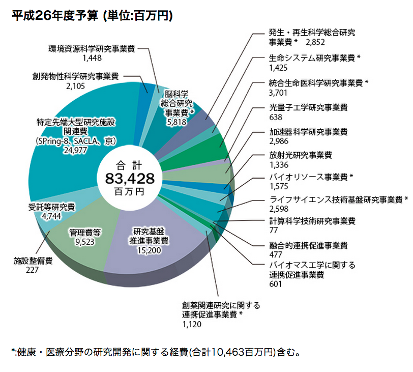 国民一人で割ると、国民ひとりあたり、理研の研究に、年間695円支払っている計算になる。