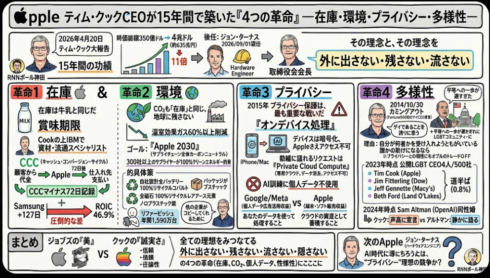 次期CEOのジョン・ターナスは、この遺産をどう引き継ぐのか? AIが進化する中で「プライバシー重視」の姿勢はどこまで競争力を保てるのか? 今後のAppleの動向から目が離せません。