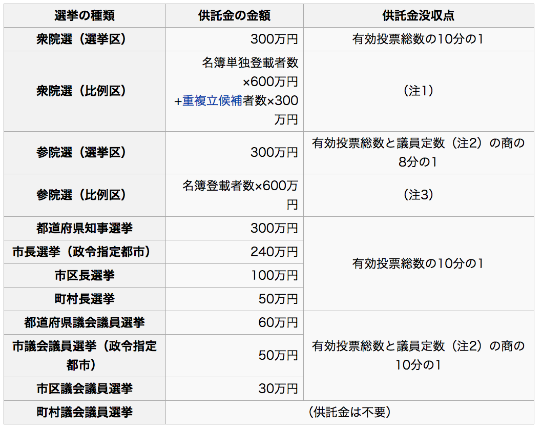 供託金は東京都儀会選挙の場合は60万円 供託ポイントは10%