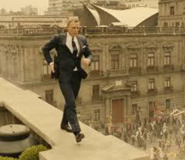 また、このスーツとメキシコシティの青い空、そして、お祭りの“暑い”雰囲気が非常にマッチして、コーディネイトとしても素晴らしいものがあります。建物の爆発によって発生した砂埃の中でも、はっきりと映えるスーツと、なによりイギリスらしい“着崩さない、鎧のような”着こなしは、「ボンドが普通ではない」ということをはっきりと表現しています。スカイフォールのタイトルシークエンスでは、列車に飛び乗ったボンドが、崩れ落ちる車体や騒然とする乗客のことは気にも止めず、冷静にカフスを直すしぐさがありました。これも上で言ったような「ボンドが普通ではない」ということの表現の一つでしょう。それではスーツを細かく見ていきます。ちなみに、衣装解説No.1~3で言い忘れましたが、今回衣装を提供しているブランドはTOM FORDですが、衣装デザイナーは別にいて、それはJany Temime/ジャニー・ティマイムという女性です。今から解説するスーツの生地やスタイルもジャニー・ティマイムがデザインないしチョイスしています。着用しているスーツは、典型的な英国紳士を表現するためにクラシックに映る衣装を意識したそうです。少しだけ彼女の紹介をしますと、彼女は映画の衣装デザイン界ではかなりの大物。有名なところではハリーポッターシリーズの衣装をすべて担当しています。また、前作スカイフォールの衣装も彼女が担当しました。スカイフォールから一気にシャープになったダニエル・クレイグのスーツは、彼女のセンスによって作りだされたものだったわけです。同じダニエル・クレイグでもクォンタムの時はコンケープドショルダーという肩を意図的に盛り上げた堅めのスーツ(TOM FORD “REGENCY”)でしたよね。その時と今のスカイフォール、スペクターのスタイルとでは、彼のキャラクターの印象自体が違います。彼女が、ダニエル・クレイグならびにスカイフォールのヒットの非常に重要な部分を担っているというのは言うまでもありません。話を戻して、スーツの紹介です。まずはジャケットから。ジャケットは、ダニエル・クレイグの筋肉に合わせて綺麗なラインが出るように薄めの肩パッドのロープドスリーブ。バストからウエストは急激に絞られ、かなりタイトです。フロントのボタンは3つボタンの段返りで真ん中留め、そして大きく開いたカッタウェイです。Vラインはスカイフォール時よりも少し深めになっており、後ろはシングルベント。ポケットは“barchetta”と呼ばれる胸ポケットと左右のポケットの3つ。左右はスラントになっています。袖口は、4つボタンの本切羽で、3つ留め。スカイフォールで着用していたものの袖口は3つボタン本切羽で2つ留めでしたね。ボタンホールは、最も袖口に近い一つだけ、大きく長いデザインのホールになっています。