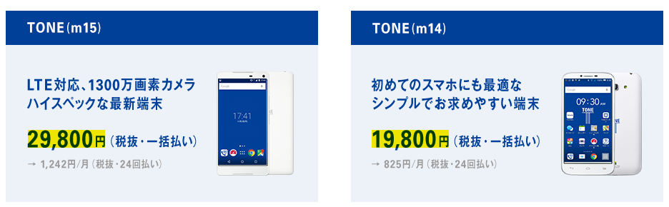 TONE モバイルは、端末料金を一括か分割の2種類