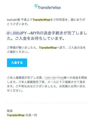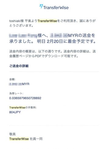 やっすー!!! はっやー!!! なんと火曜日ではなく月曜日に送金完了となっていた!