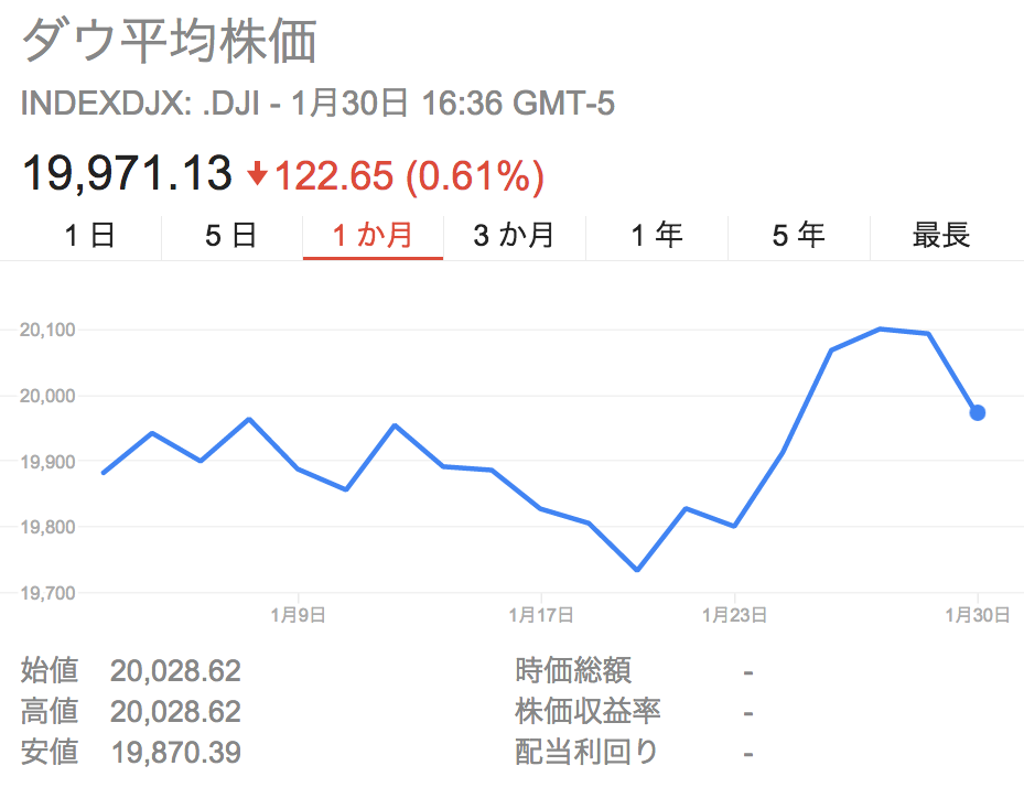 ❏ダウ平均の下げ幅は昨年11月の大統領選後で最大となり、2016年10月11日以来およそ3カ月半ぶりの大きさだった。トランプ米大統領は27日、中東・アフリカなど「テロ懸念国」7カ国からの入国を制限する大統領制に署名した。移民政策が厳格化されたことに対し、米国内外で混乱や反発の声が広がったことが嫌気された。
