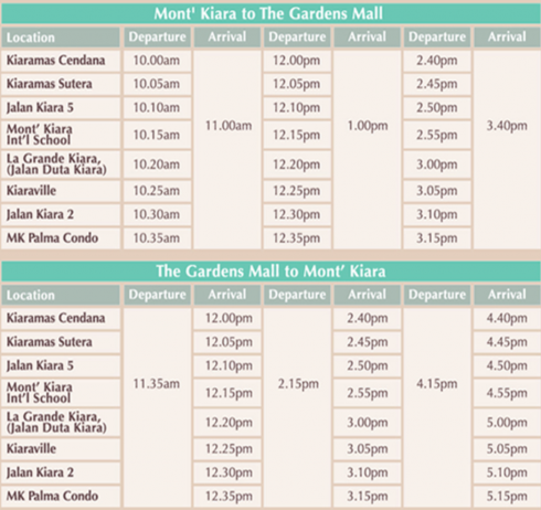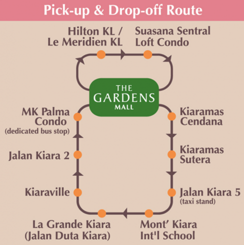 ミッドバレーまでは、最寄のJaran Kiara 5 からThe Gardens Mallのシャトルバスが出ている。