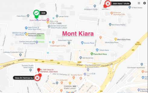 ❏KDSのJalan Kiara 3 側からは、ローカルのバスで、チョーキット Chowkit まで約40分。 1リンギット(約29円) クアラルンプールのローカルダウンタウンの「チョーキットマーケット」などがあり、モノレール乗り換えでブキビンタンなどや、KTRのプチョン駅、LRTのPWTC駅へも徒歩でアクセス可能