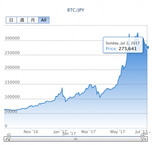 只今の1BTCは、27万5641円です