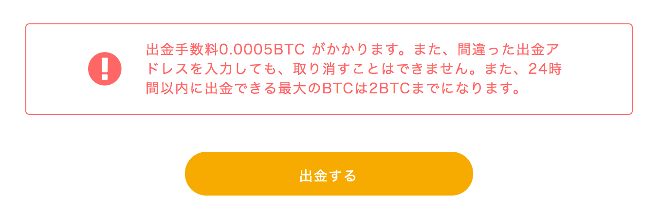 ❏24時間でキャッシュアウトできるビットコインは 2BTC(つまり1日に約60万円)まで!