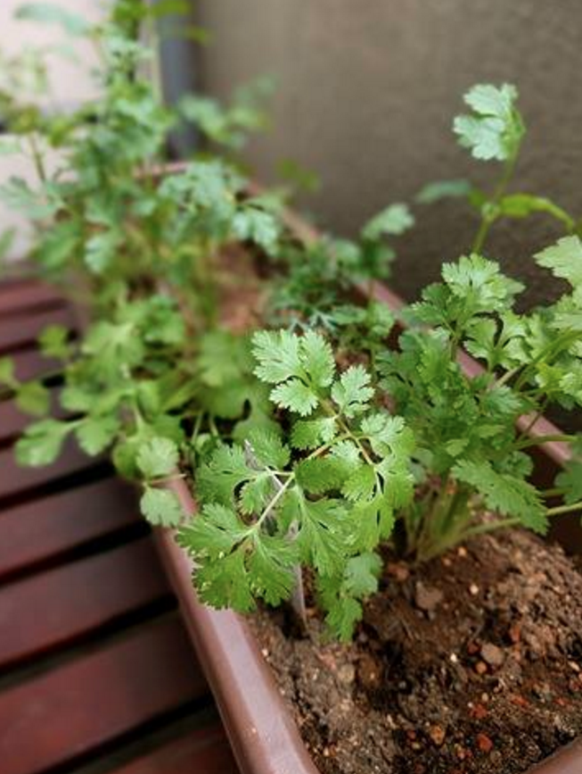 パクチー、コリアンダーなどは、タネから育てると時間がかかるけれども、苗を150円くらいで入手してきたら、