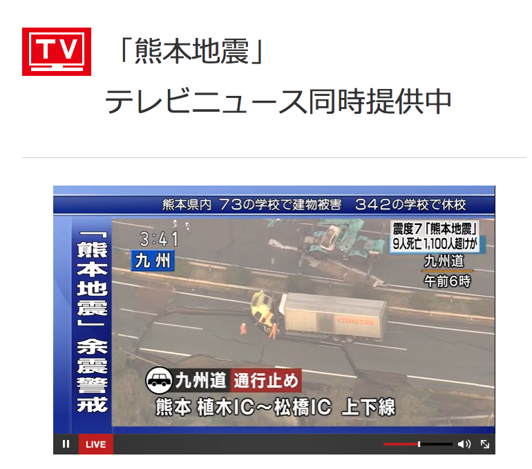 NHKがウェブでテレビと同じ放送を「テレビニュース同時提供中」表記している。