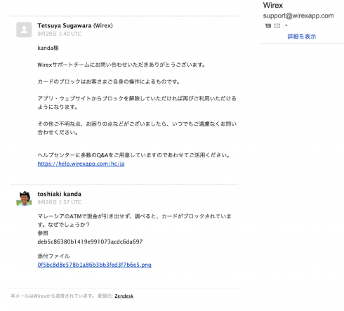ビットコインをATMからキャッシュアウトできるWirexカードが突然使えなくなってサポートとのやりとり…。