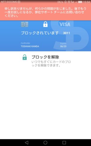 しかし、すぐにカードのブロックを解除できますとあるので、ブロックを解除すると、弊社サポートチームに問い合わせくださいとなる。
