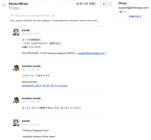 #wirex サポートの連絡が途絶えた… 10月15日のカード停止の前にブロックされたまま解除できないです。ご注意ください!#VALU