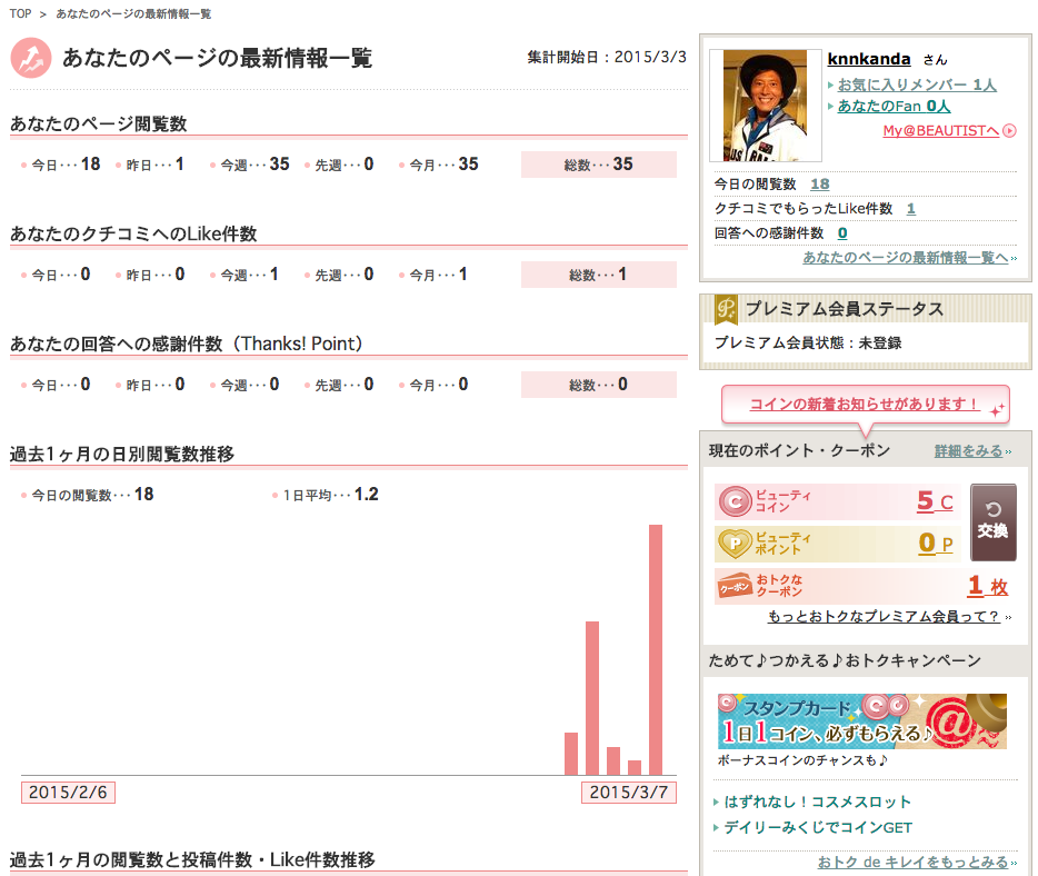 そして、こちらも「口コミ」という自分の評価が日々どのように評価されているのかを可視化している。