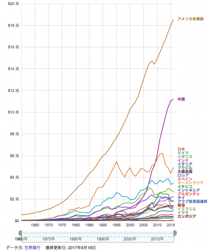 名目GDP値とは、実際に市場で取り引きされている価格に基づいて推計された値。