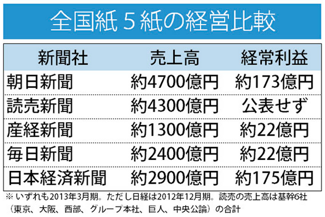 日本の新聞 2014年