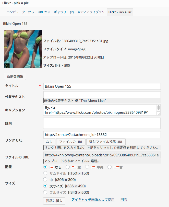 そして、気に入った写真を選択する。サムネイルに登録(アイキャッチ画像として使用)もできます。