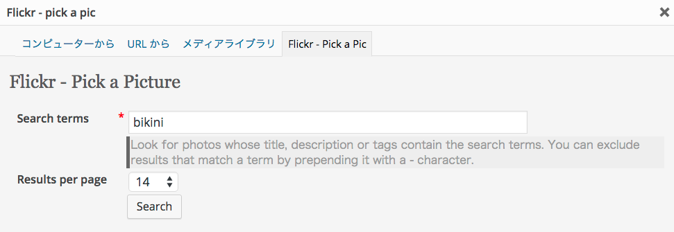 ブログのエントリに写真がないと、なぜか寂しい、そんな時にイメージカットをFlickerから、フリー使用が問題ない写真を選択できるプラグイン。米Yahoo!のFlickrのアカウントが必要です。