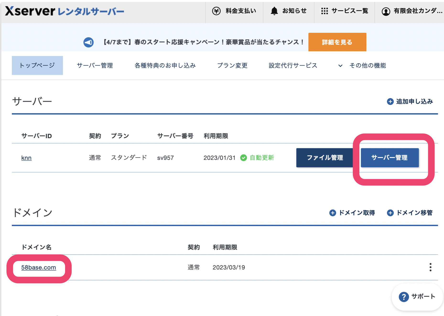 キャンペーンなどでドメインを取得する…