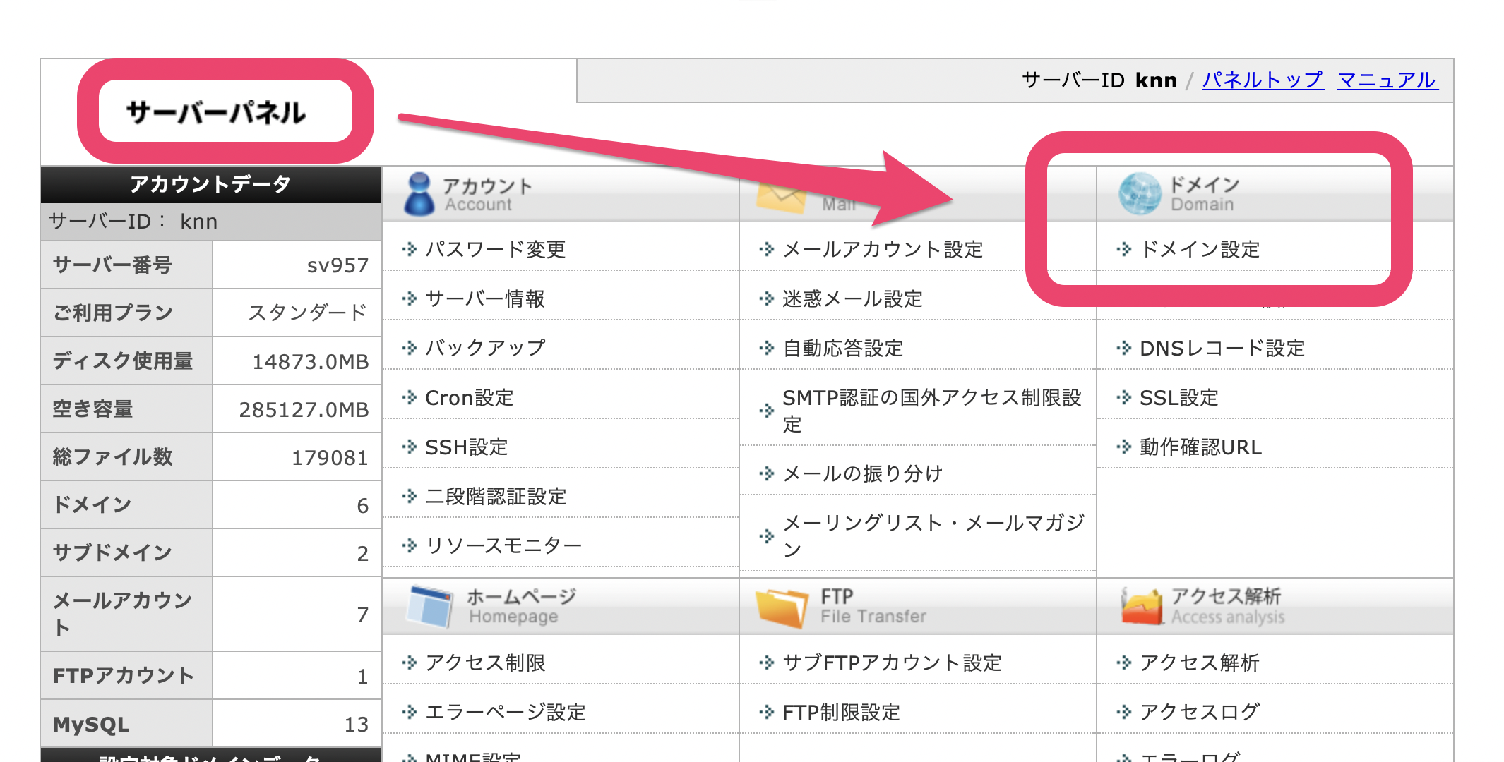 2.『サーバー管理』とは『サーバーパネル』へ飛ばされる