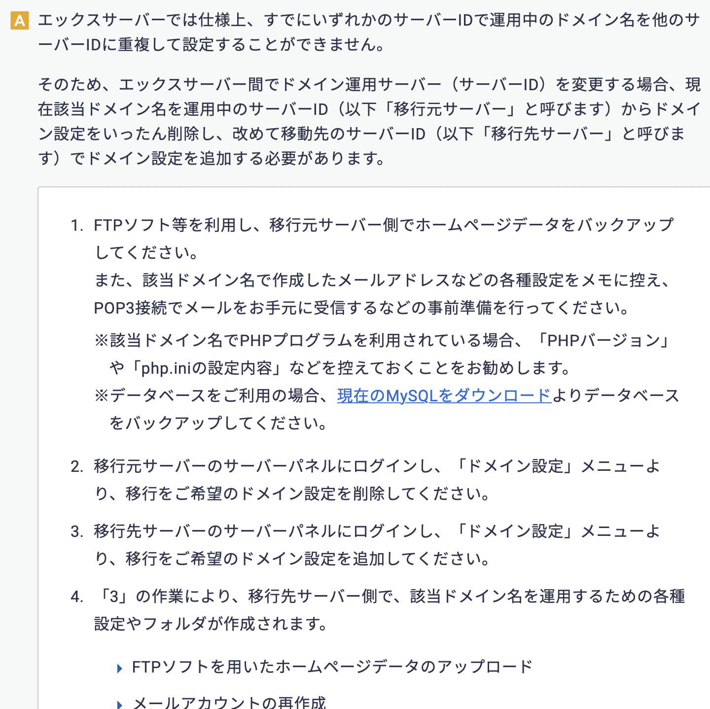 異なるサーバーIDへドメイン運用サーバーを変更したいです。