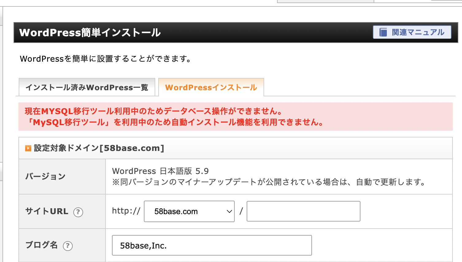 - 「MySQL移行ツール」を利用中のため自動インストール機能を利用できません。こうして無駄な時間がすぎていく…。