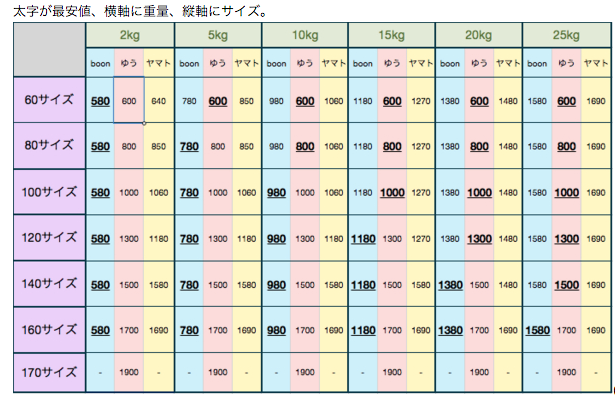 宅急便 VS はこBOON VS はこBOON mini 関東から送った場合?