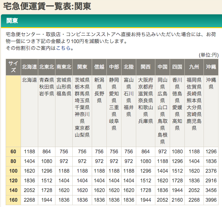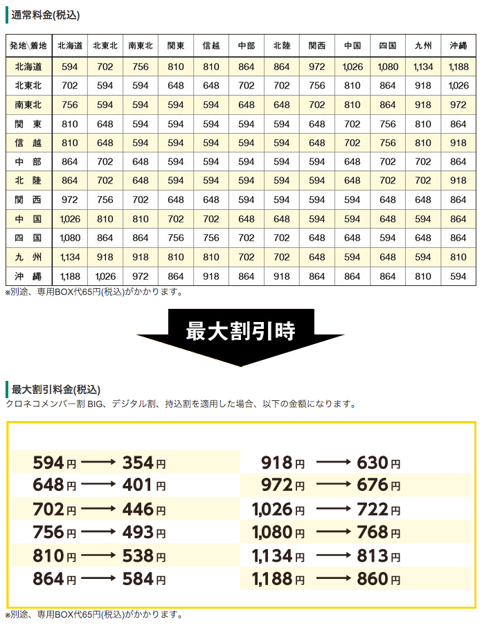 この金額から、10%の『クロネコメンバー割』と15%オフとなる『クロネコメンバーBIG割』がある。さらにコンビニ持ち込みで▲¥100